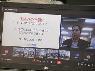 強い冷え込みのため、オンラインで各教室にて行いました。
