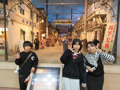 2日目のはじめは鹿児島市街地での班別研修でした。事前に立てた計画にそって見学をしました。黎明館(博物館)やメルヘン館、美術館などを巡りました。自分たちだけで行動する緊張感や楽しさを味わうことができたようです。