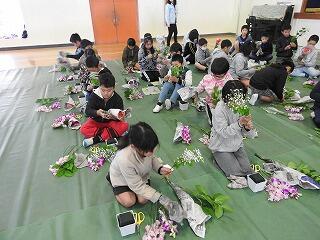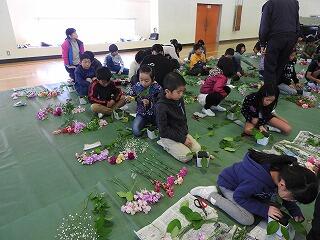 食育という言葉は耳にしますが、花育という言葉をご存じでしょうか?本日11月15日に本校3・4・5年生がお花についての勉強をしました。県の職員の方々、お花屋さん、JAの方々、お花を育てていらっしゃる佐藤さん、小野さんなどたくさんの方々が熱心に子どもたちにフラワーアレンジメントを教えて下さいました。たくさんのお花を一人一人に持ってきて下さり感激でした。ありがとうございました。