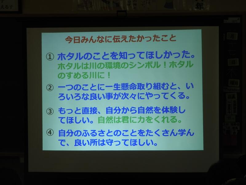 北川と言えば、清流に現れるホタルが有名です。その地元の子どもたちがほたるについて知らないのはいけません。夏にほたるを見るのは当然になっている子どもたちですが、門川高等学校ほたるプロジェクト顧問の吉田 巧先生をお招きして6年生がほたるの生態について学びました。スライドやほたるの幼虫を実際に教室に持ってきていただき、熱心にご指導していただきました。今年、夏に見るほたるは、いつもと少し違うかもしれません。