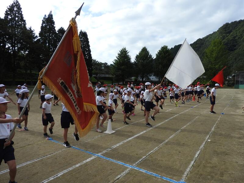 9月24日(火)運動会全体練習3回目が行われました。今日は、対団リレーの練習や開会式などが行われました。北川小は台風17号の影響もなく順調に練習が進んでいます。