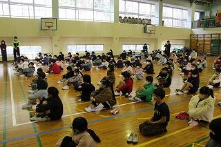 寒い朝となりました。今日の朝の活動は、ボランティア感謝集会でした。体育館で行いました。