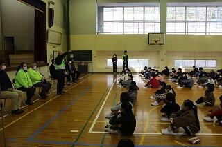 普段から子どもたちの交通安全の見守りをやっていただいている地域の方や学校評議員の方、PTA会長さんに学校に来ていただきました。