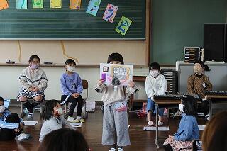 1・2年生は、1年間の学習の成果や思い出を発表していました。5年生は、道徳の授業で感謝ということについて学んでいました。6年生は、総合的な学習の時間の学習で取り組んだ「小倉處平」について発表していました。4年生は、自分の成長と総合的な学習の時間で学んだ神楽を。3年生も学習の成果と総合的な学習の時間で学んだホタルについて発表していました。