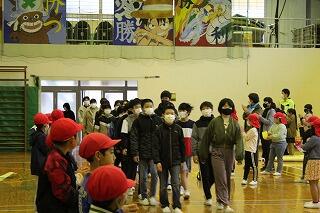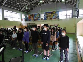 2校時体育館で、卒業生と4・5年生で卒業式練習を行いました。