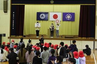 話の途中で「学問のすすめ」を全校で暗唱しました。終わると先生方から拍手が起こりました。