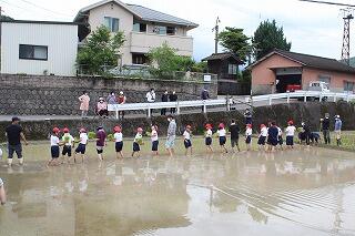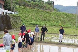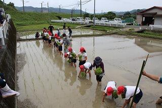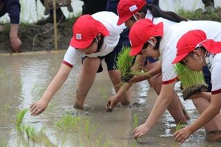 5年生は、2校時から4校時にかけて、田植えを行いました。田植えをする場所は、前PTA会長さんの田んぼです。JA延岡青年部の方々に協力していただきました。はじめは、慣れずに時間がかかったりたくさんの苗を植えてしまったりしましたが、最後になると上手に植えることができていました。
