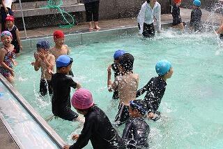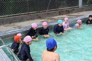 「冷たい。」との声もあがりましたが、楽しそうに水慣れをしていました。