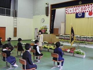 4月13日(水)に入学式がありました。18名の1年生が北川小学校に仲間入りしました。1年生は、しっかりとお話を聞くことができ、名前を呼ばれたときは元気よく「はい」と返事ができていました。