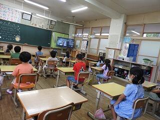 最後に、保体部の先生が、9月の生活目標「夏を元気に過ごそう」についてお話されました。熱中症にならないようにするために守ってほしいことを、イラストや動画をもとに、具体的に説明しました。熱中症に気を付けて、2学期も楽しく元気に過ごしていくことを願っています。