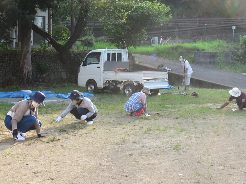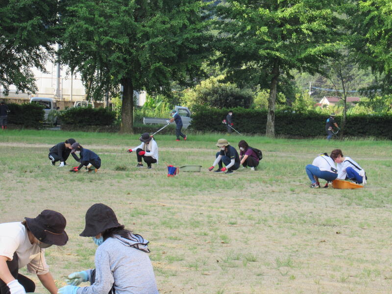 運動場の草取り、草刈りを行いました。おうちの方々は、子どもたちが安全に運動したり遊んだりできるようにという思いで、いっしょうけんめいに作業をしてくださいました。保護者の方々と、保護者OBの方もきてくださいました。ありがとうございました。