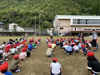 9月2日の3校時に避難訓練を行いました。今回は地震・土砂崩れを想定した避難訓練でした。