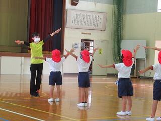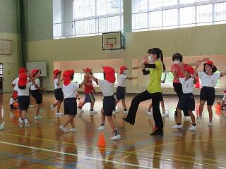 1年生は、運動会で披露する「ばんば踊り」の練習をがんばっています。ばんば踊りの正しい踊り方を教えていただくために、日頃からばんば踊りの活動をされている方を講師にお迎えし、2回練習を行いました。