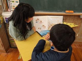 当日は「下級生が楽しんでくれるかな」と少しドキドキしながら読み聞かせをする上級生の姿もありましたが、じっどお話に聞き入ったり、時折笑顔を見せたりする下級生の姿がありました。