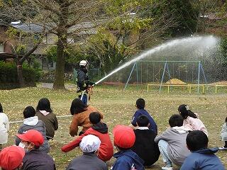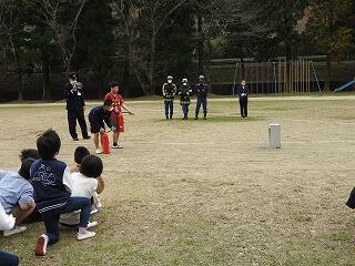 今回の避難訓練は、大きく2つの内容で行いました。①安全な避難の仕方を身に付けること ②消火器の使い方や消防車について知ること です。