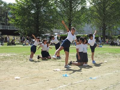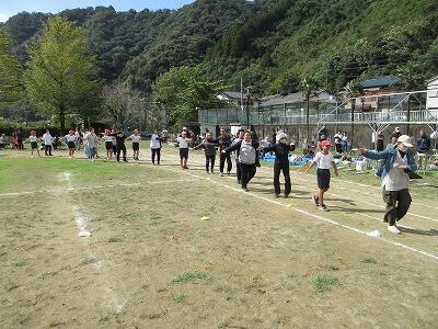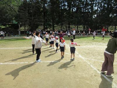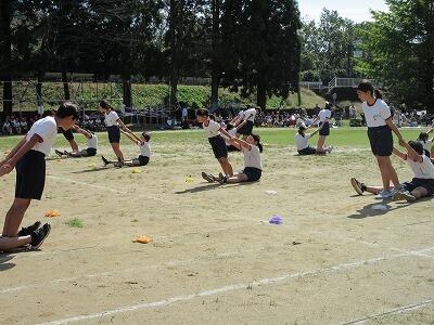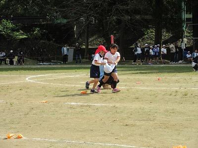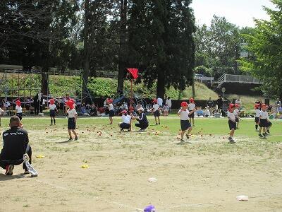 強い風の中、みんながんばりました。特に、3・4年生の団技は風にあおられてボールが転がってたいへんでした。