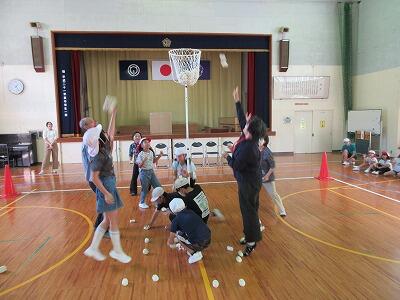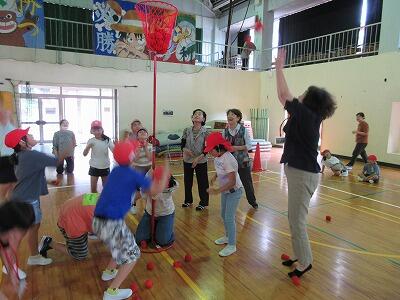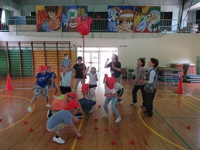 今回は運動会の雰囲気そのままに体育館で玉入れをしました。赤と白に分かれ、子どもたちと地域の皆様とで入れた球の数を競いました。子どもたちも地域の皆様も笑顔いっぱいに楽しむことができました。今回は8名の方においでいただきました。ありがとうございました。