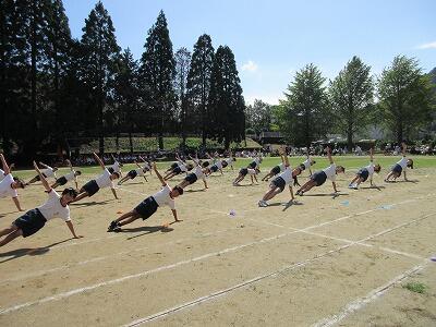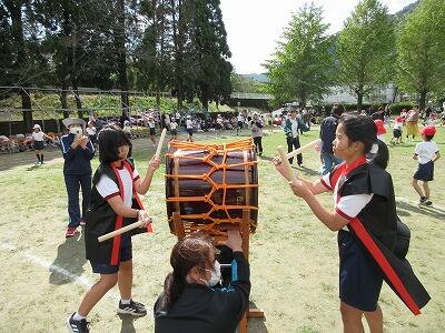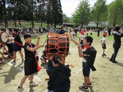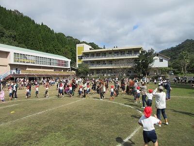 今年の運動会では、多くの保護者・地域の方・来賓の方・中高校生などたくさんの方が輪に入ってくださいました。一体感を感じられる素晴らしい時間となりました。代表の子どもたちが練習してきた「ばんば太鼓」も会場を盛り上げました。ずっと続いて欲しい光景だと強く感じました。