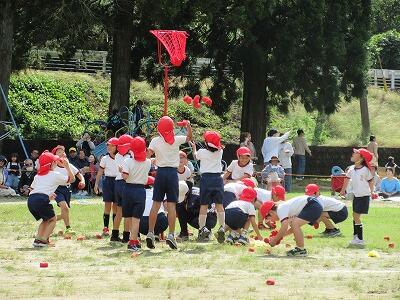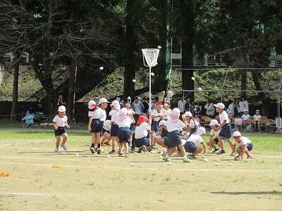 今回は1・2年生の玉入れと5・6年生のダンスです。どちらもにぎやかに会場を盛り上げました。