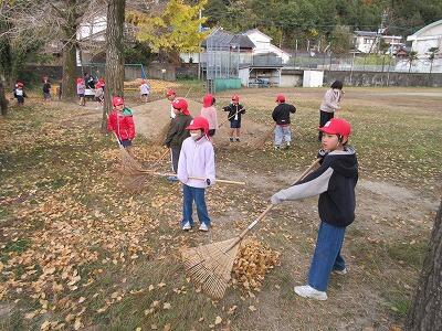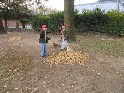 校内にイチョウの葉が大量に落ちているのでみんなで片付けました。ほうきやくまでを使って時間いっぱい活動しました。ほとんどの葉が落ちているのでもう少しで地面の落ち葉はなくなると思います。(朝のボランティアでもがんばっています。)
