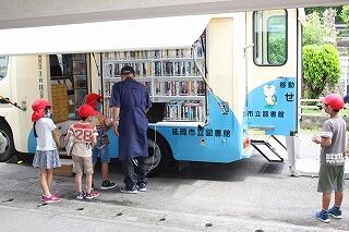 今年初めての移動図書館です。今日は、下学年の日です。みんなとても楽しみにしていました。