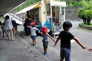 昼休みに北川図書館から移動図書館「せせらぎ号」がきました。