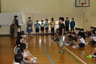 今日の朝の時間に、延期になっていた1年生の歓迎集会を体育館で行いました。