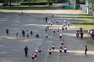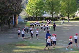 朝の活動は、持久走でした。今日から、持久走大会まで何度か運動場を走ります。