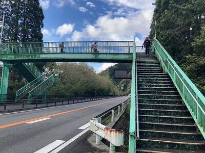 徒歩で通学する子どもたちは、主に学校前にある陸橋を渡って通学します。安全ボランティアの方々の協力を得て、登校班をつくって登校しています。学校のすぐ横を通行量の多い国道10号線が通っているので、車に気を付けて登校しています。また、統合した学校のあった3地区の子どもたちは、それぞれスクールバスを使っています。その他、学校の南側で距離のある子どもたちは宮崎交通のバスを使っています。学校からの距離等の関係で保護者の送迎によって登校する子どもたちもいます。(最後の写真がスクールバスです)