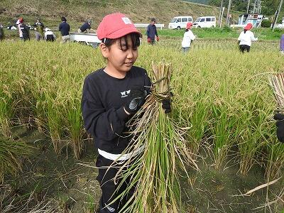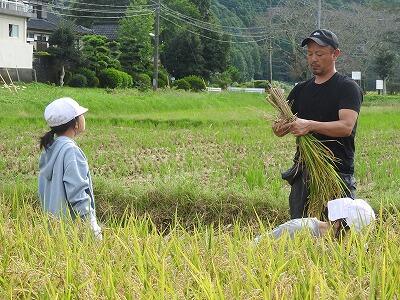 春に植えた米が実り、10月8日に稲刈りをしました。