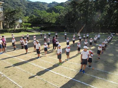 2回目の運動会全体練習を行いました(10/9)。先週金曜日の1回目は雨のため体育館での実施でしたので、初めて運動場で練習することができました。