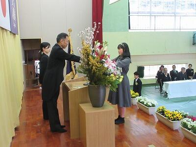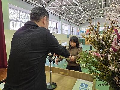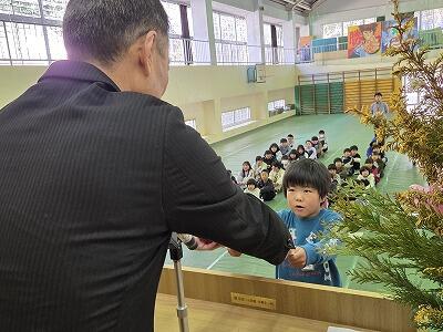 各学年の代表に修了証を渡し、この一年間の努力を讃えました。子どもたちは、いろいろなことに一生懸命取り組み大きく成長しました。