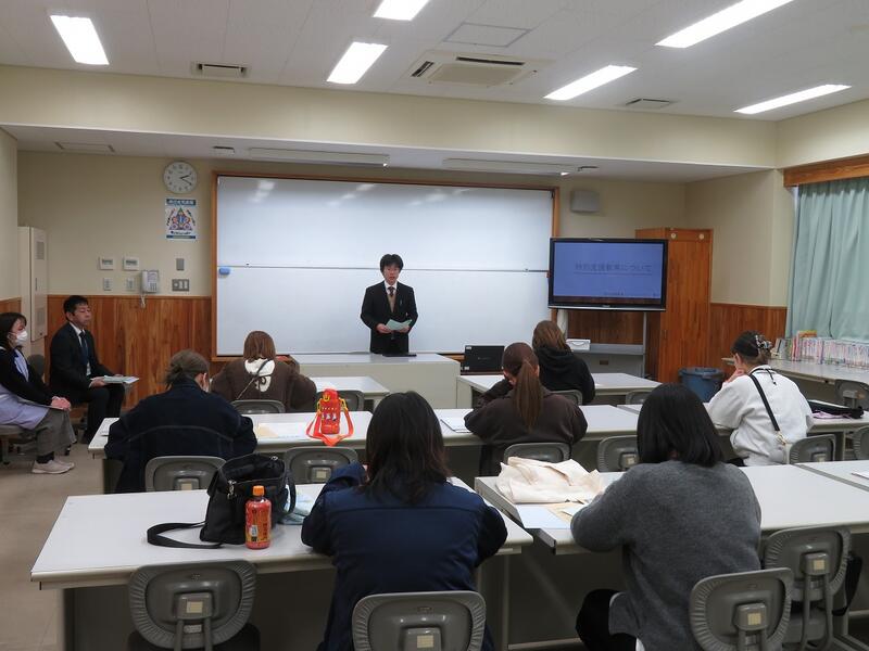 ↑保護者の皆さんには移動していただき、入学に向けて学校から様々な説明をさせてもらいました。