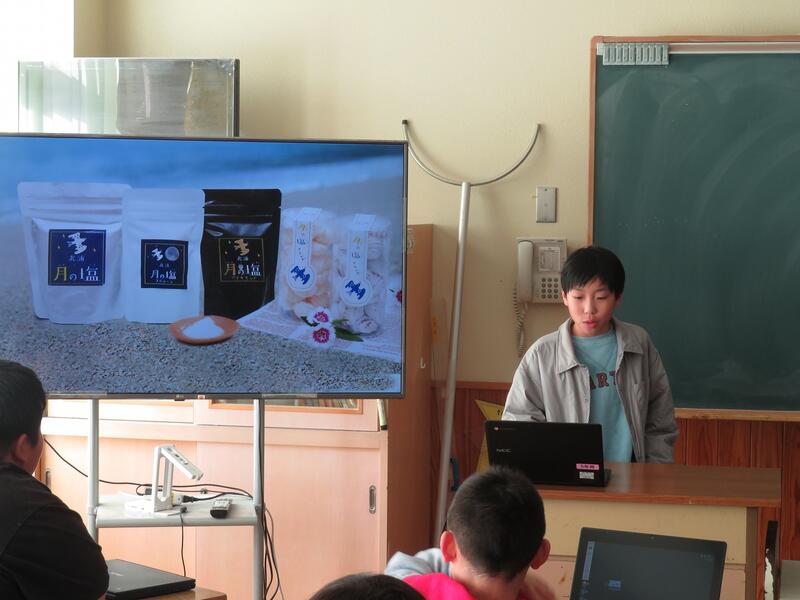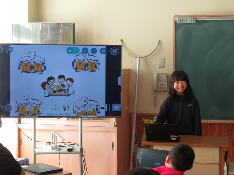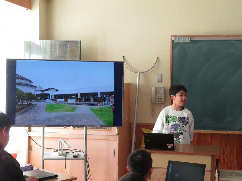 全員がタブレットでプレゼンを作り、分かりやすく楽しく紹介していました。ロバート先生にたくさんのおすすめの場所やものを伝えることができていましたよ。Good Job!