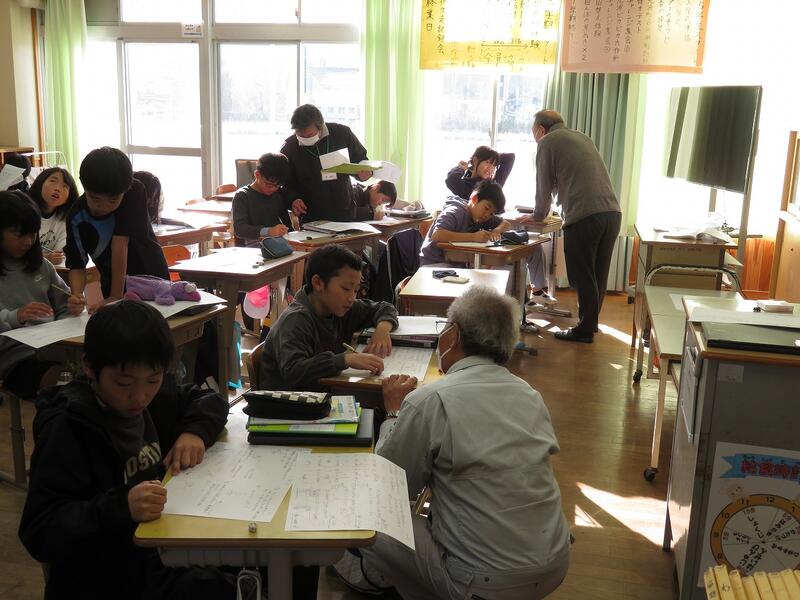 ↑5年生は算数で「割合」の学習のまとめです。今日も「励まし隊」の方々が丁寧に個別指導をしてくださっていました。単元テストに向けてがんばってね。