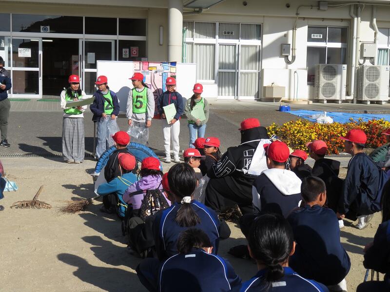 今日は本年度2回目になるクリーン作戦の日です。今回は小中学生が協力して縦割りの班で校区内の清掃を行いました。