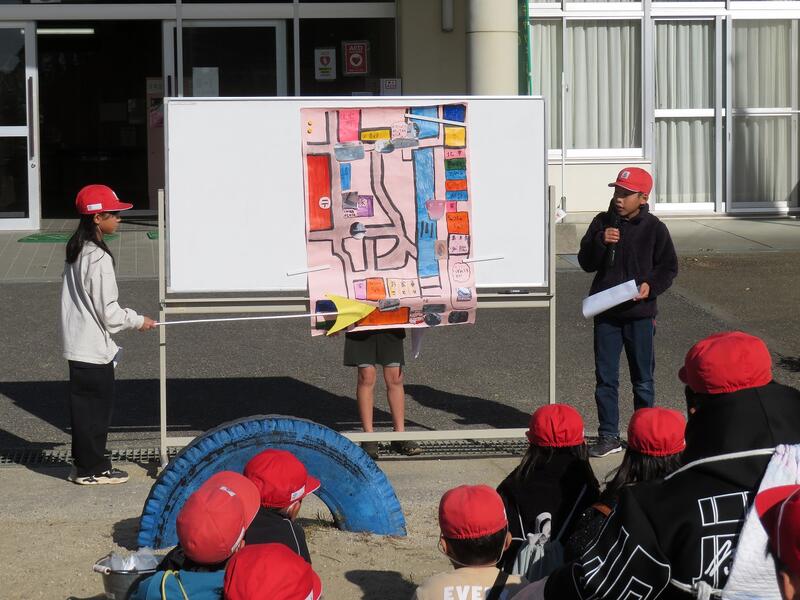 ↑続いて4年生が校区内の危険箇所等の説明をしてくれました。立派な発表でした。