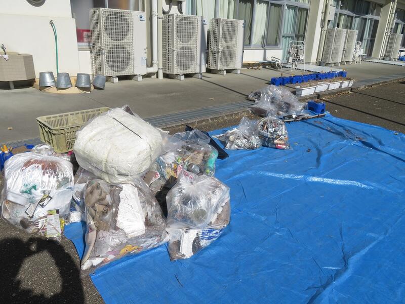 ↑1時間弱の作業でも大量のごみが集まりました。今回参加した小中学生はごみを捨てる人間にはならないはずです。たくさん拾ってくれてありがとう。参加してくださった保護者の皆様、ありがとうございました。