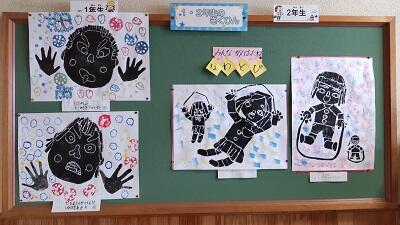どの学年も、力作ばかりで紙を切ったり、貼ったり、版画板を彫刻刀で削ったりと集中して取り組む姿を見ることができました。小学校においては、このような作品作りは時間がかかりますので、集中力を育てる上で貴重な時間となります。また、根気強さ、粘り強さも身に付き、将来の仕事にも役に立つ時間だと思います。皆さんよく頑張りました。