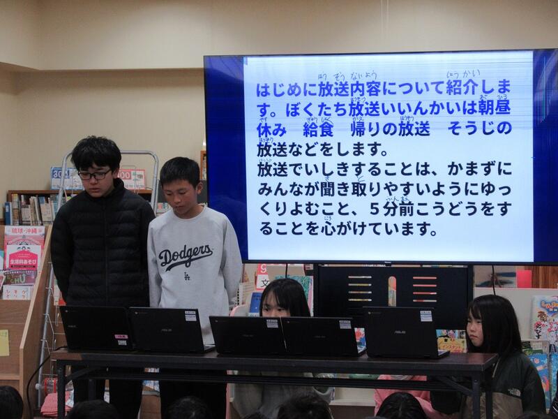 今日は全校集会(委員会活動発表)でした。今朝は放送委員会のみなさんが、自分達の役割や気をつけていることを丁寧に説明し、クイズで楽しませてくれました。