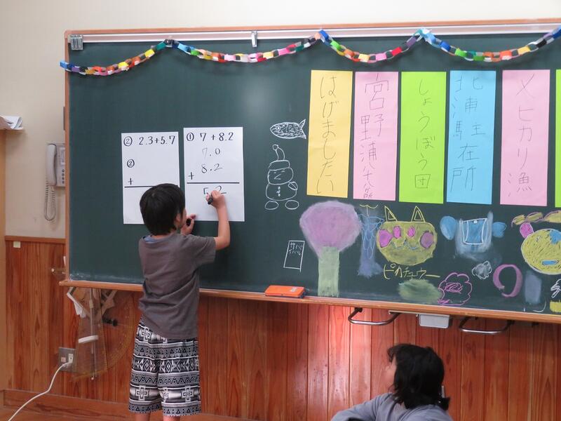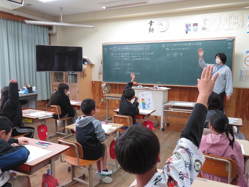 ↑ 1年生は算数の学習で、同じ数ずつ分けるといくつになるかを考えていました。いつも集中して頑張っています。
