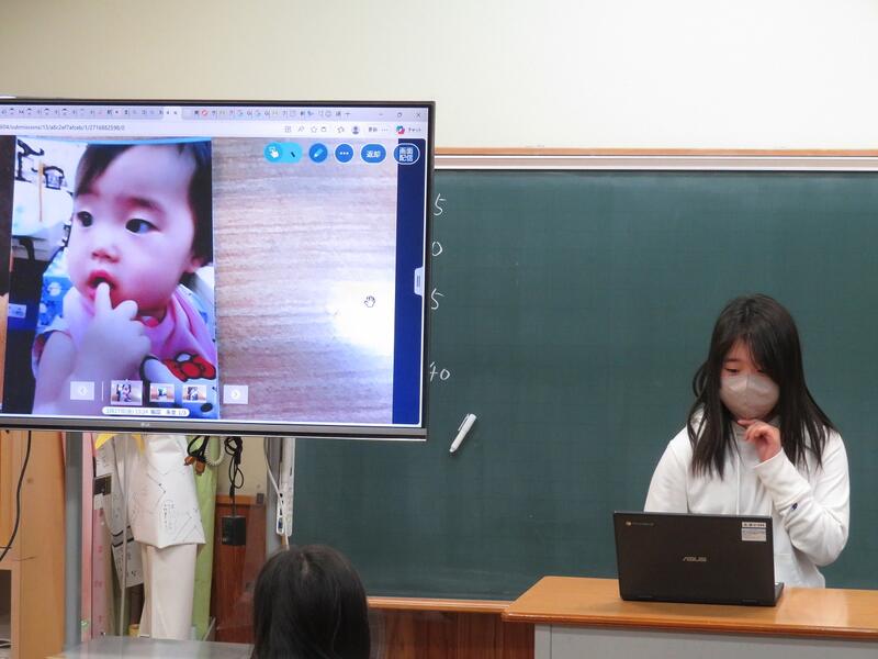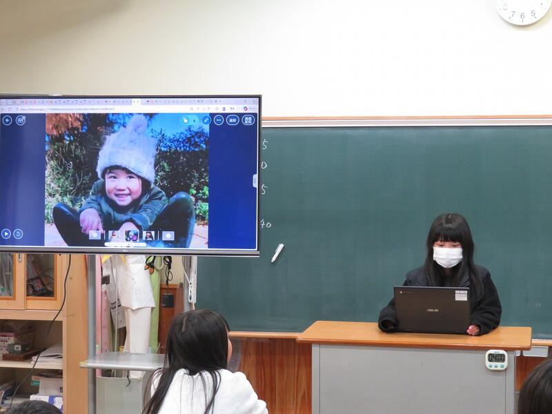 ↑4年生は今までの自分の成長を、タブレットで写真を見せながら発表していました。