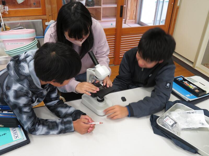 ↑5年生は理科で顕微鏡を実際に触りながら使い方を学んでいました。