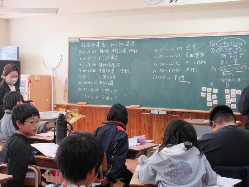 ↑ 5年生は、明日のお別れ集会、お別れ遠足について、5年生の動きや役割の確認などをしていました。5年生が中心となって全校レクリエーションを考えています。天気が心配ですが、予定通りできることを願っています。