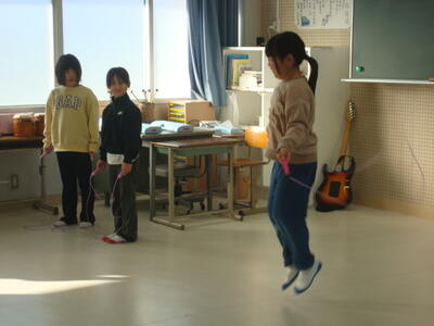 各学年、体育の時間に持久走大会に向けた練習をしています。男子が走っているときは女子が、女子が走っているときは男子が、大きな声で応援している姿はうれしく、ほほえましいです。当日は、少しでも自分のタイムがよくなり、自分の弱い心に負けないように走ってほしいです。