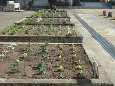 3月頃をイメージして、全学年花壇へ花の移植を行いました。パンジーや金魚草、なでしこという花を植えています。満開になったときが楽しみです。卒業式のころは花いっぱいの学校になっていることでしょう。