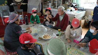 そのあと、もと宮野浦分校内にある元気塾のお部屋で、元気塾の方々と双六をして交流しました。