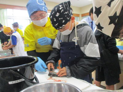 またまた婦人会の方々のご協力のもと、2月21日に5年生は魚のすり身体験を行いました。魚のすり身は、アジを使って行いました。このアジは、浩栄丸 様のご厚意により提供されています。6年生のアジの開き体験時も浩栄丸 様からのご厚意でした。ありがとうございます。郷土料理に触れる機会を提供していただき、ありがとうございました。計画してくれた担当の先生方ありがとうございました。