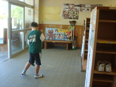 ↑ 児童玄関の掃き掃除を2年生から6年生の児童がしてくれています。