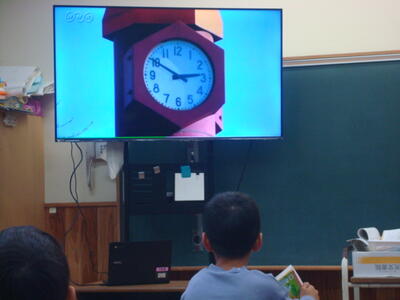 今、1年生は時計の読み方を学習しています。今日は、NHK for School というネット上の教育情報コーナーから時計の学習の動画をみて、下の写真のように2時50分か3時50分かを考えるものでした。